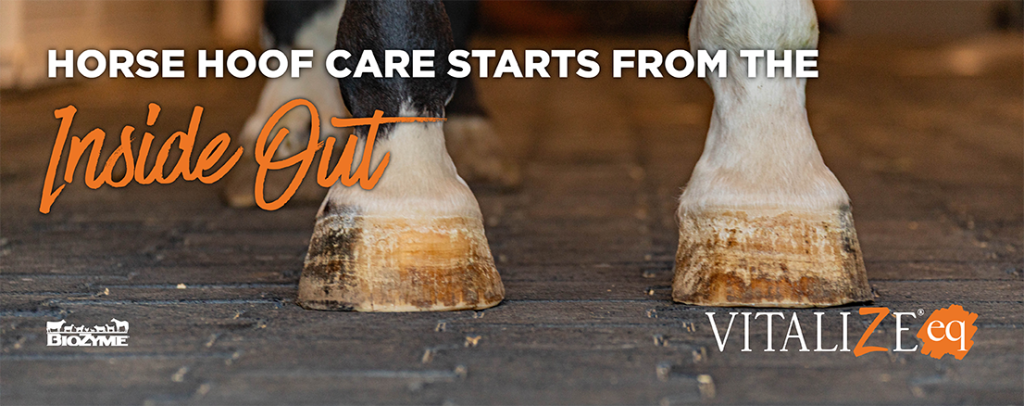 At BioZyme®, we design Vitalize® products that provide your horse with better care for the best life possible. Vitalize is a line of supplements for horses, dogs, and cats with proven solutions to keep your animal healthy and performing. We know that hooves provide a solid foundation for your equine companions, and nutrition is at the heart of everything we do. Our team of experts wants to ensure you understand the vital role nutrition plays in horse hoof care.